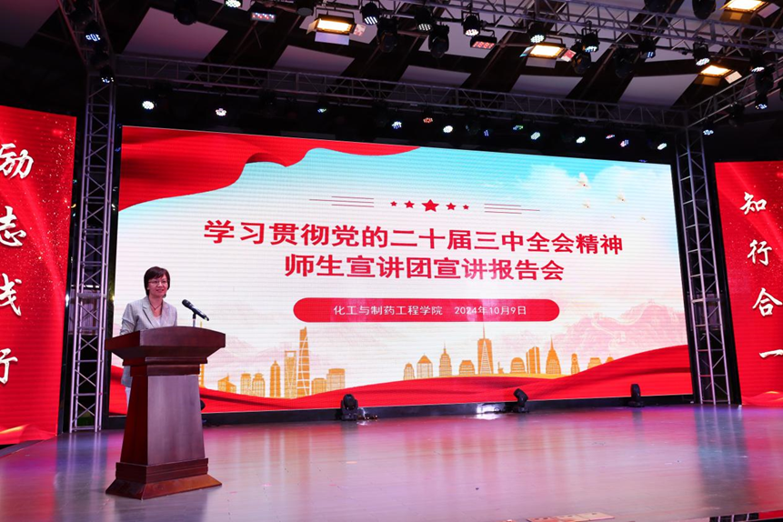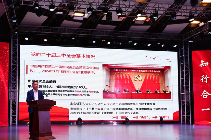 为全面深入学习宣传贯彻党的二十届三中全会精神,学深悟透习近平总书记关于全面深化改革的一系列新思想、新观点、新论断,教育引导全体师生统一思想、凝聚共识,进一步准确把握全会精神的精髓要义,根据学校统一部署,外围买球的app十大平台积极响应号召,分两批次邀请学校学习贯彻党的二十届三中全会精神师生宣讲团开展宣讲报告会。外围买球的app十大平台党政领导班子、全体辅导员及2000余名在校生参加宣讲报告会。报告会由外围买球的app十大平台党总支副书记周玳宜主持。
